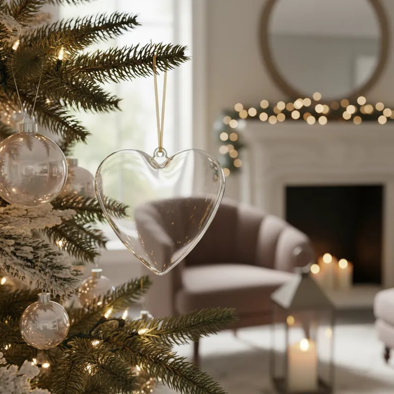 20 Coração De Acrílico Natalino Porta Fotos Natal Esfera