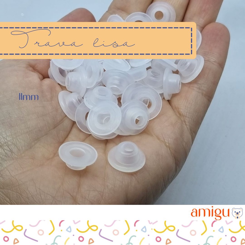 20 Focinhos 1.5 com trava de segurança Produto fabricado no Brasil, travas da melhor qualidade garantindo segurança para os amigurumis destinados a crianças. Falando em travas, você poderá escolher entre trava lisa ou côncava :) Dimensões: 13mm de largura x 11mm de altura Selecione a cor desejada no campo "variação". Se você optar por "misto", você receberá um mix das cores disponíveis no momento :) Pacote com 10 focinhos e 10 travas.