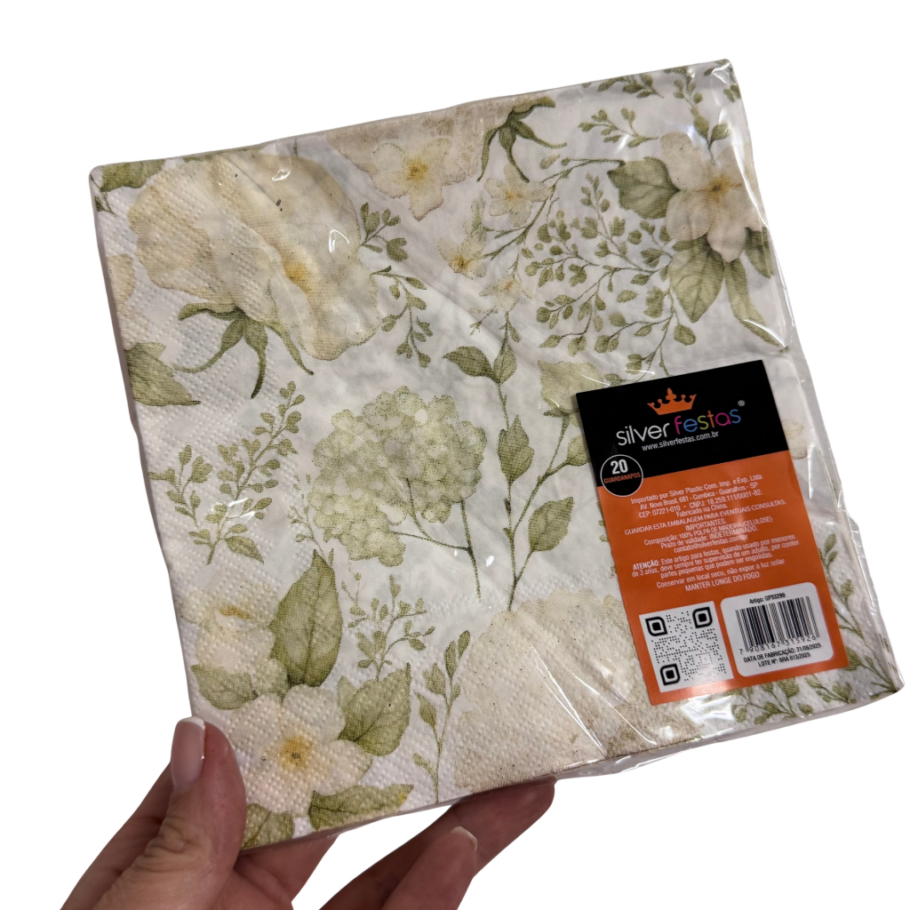 20 Guardanapos de Papel Folhagem Suave 32x32 cm Folha Dupla Silver Festas - Inspire sua Festa Loja