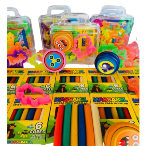 20 Maleta Acrilica + 20 Cortador + 20 Cxs De Massinha De Modelar +20 Ioio Festa Lembrancinha Prenda