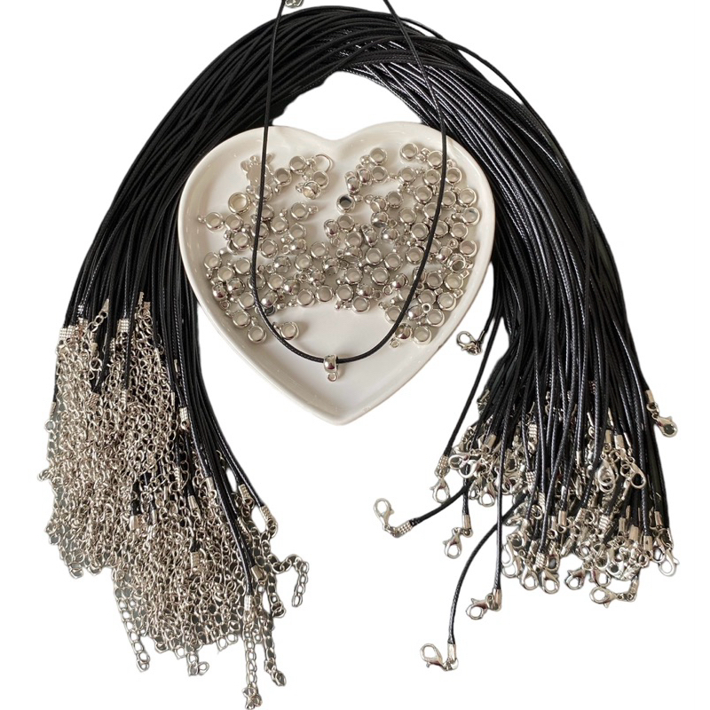 20 ou 50pçs colar de cordão encerado 1.5mm/2mm com fecho 45cm + 20 pçs canequinha abs para pingente
