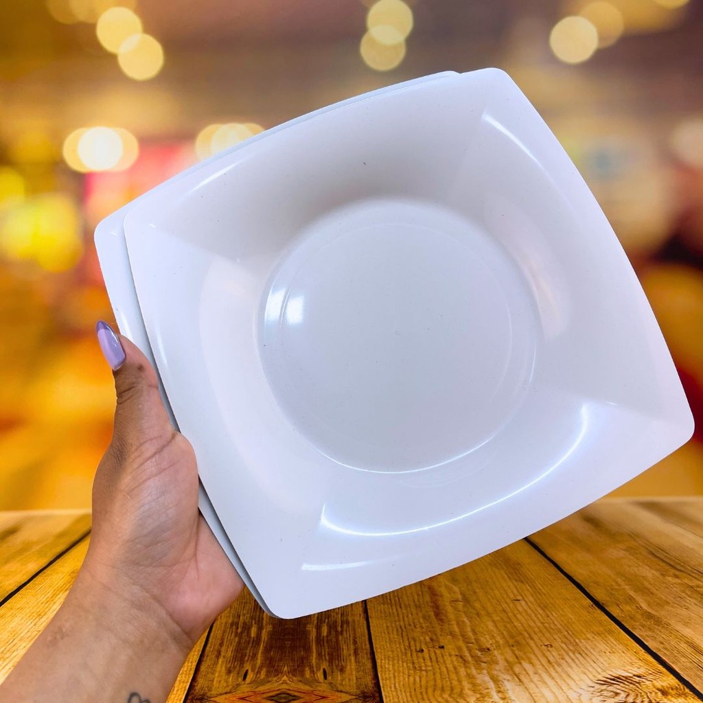 20 PRATOS REFEICAO PLÁSTICO QUADRADO REUTILIZÁVEL BRANCO
