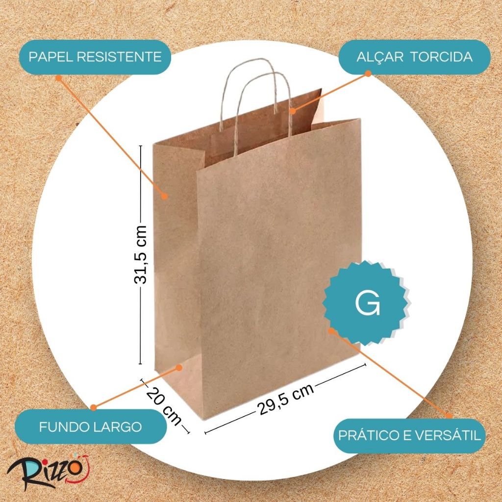 20 Sacola De Papel Grande 31,5x29,5x20 Para Delivery C/ Alça Transforme suas embalagens com a Sacola de Papel G 31,5x29,5x20cm Kraft da Cromus! Elegante, prática e sustentável, esta sacola é a escolha perfeita para quem deseja aliar funcionalidade e estilo em um único produto. Fabricado em papel kraft de alta qualidade, é resistente e ideal para diversos tipos de uso, como: embalagens para presentes; itens de papelaria e bijuterias; doces, lembrancinhas e artesanatos. Com tamanho compacto de 31,5cm de altura, 29,5cm de largura e 20cm de profundidade, ela acomoda seus produtos com segurança e charme. O acabamento natural em kraft confere um toque rústico e moderno, valorizando ainda mais o seu presente ou mercadoria. A embalagem contém 20 unidades, proporcionando um excelente custo-benefício para quem busca praticidade no dia a dia ou soluções completas para seu negócio. Seja para uso pessoal ou comercial, a sacola de papel Cromus é a escolha ideal para eventos, festas, lojas e delivery. Ela é sustentável e reciclável, contribuindo para o meio ambiente; versátil e resistente, suporta pequenos volumes com segurança; Fabricada por Cromus, referência em embalagens de qualidade. Descrição Técnica: - Produto: Sacola de Papel - Modelo: Fundo largo e alça torcida - Cor: Kraft natural pardo - Composição: Papel Kraft - Marca: Cromus Tamanho: G - Altura: 31,5cm - Largura: 20cm - Comprimento: 29,5cm EAN: 7909107222267 Quantidade: Embalagem contendo 20 unidades. Dúvidas Frequentes: Quanto tempo leva o envio? ⏰ Todos os pedidos com etiqueta de envio liberado pela shopee até as 18hs são coletados no próximo dia útil pela transportadora Shopee Express. Qual o prazo de entrega? 🛵 A loja não tem acesso a parte logística da shopee. A Shopee não informa para a loja prazo de entrega. Ao clicar em comprar na opção envios é apresentado o prazo de entrega. O produto é novo? 😀 Sim. Só trabalhamos com produto novos e dentro da embalagem original do fabricante. Como faço para comprar mais de um item da loja? 🛍 No app ao lado do botão comprar tem o ícone de um carrinho de supermercado, clicando nele o produto será acrescentado no carrinho que fica na parte superior do app. Após acrescentar todos os produtos que gostaria é só clicar no carrinho e selecionar todos os itens e clicar em continuar. Comemore com Alegria: 🥰😀 Na Rizzo Distribuidora, a tradição e o encanto do nosso espaço físico no coração da 25 de março, em São Paulo, são cuidadosamente embalados para chegar até você. Permita-nos levar a magia de uma das lojas mais tradicionais da região diretamente para o conforto da sua casa ou empresa.