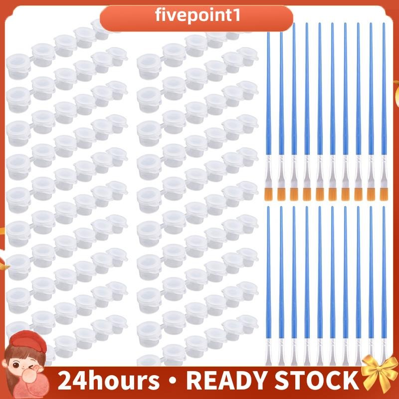 20 Tiras 120 Potes De Tinta Vazios Mini Recipientes De Armazenamento Transparentes E 20 Peças Pincéis Pintura Artes Arte