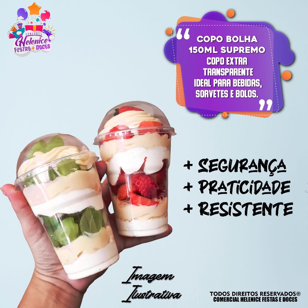 20 Unidades Copo 150ml Tampa Bolha Reforçado Sem Furo Embalagem Para Doces e Sobremesas Plastilânia
