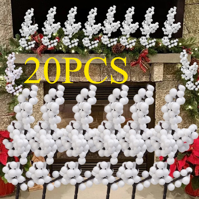 20 Unidades De Galhos De Frutas Brancas Simuladas De Natal-Flor De Planta Artificial De Plástico Branco-Decoração De Árv