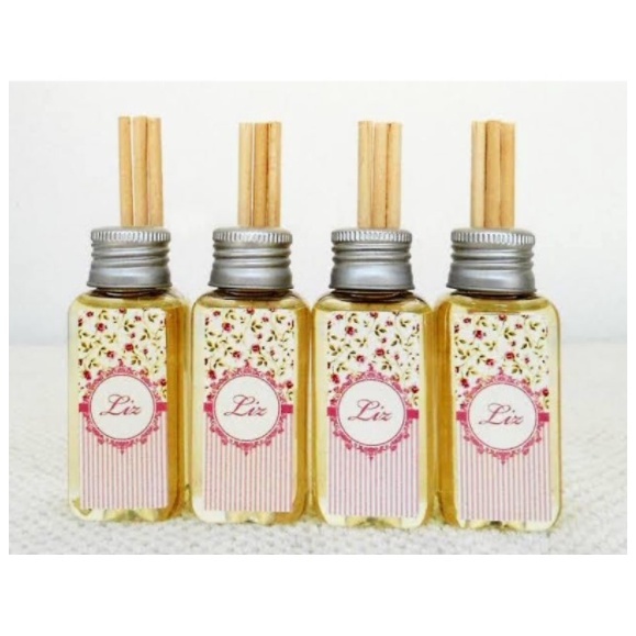 Linda opção de lembrancinha para Casamento, Nascimento, Chá de bebê , Chá revelação, Aniversário, ...e muito mais !! Fazemos para todas ocasiões. Não cobramos para fazer a arte do rótulo. Caso tenha uma arte pode nos enviar que usamos a sua arte! Altura do frasco: 7 cm. Largura do frasco: 3 cm. Tamanho do rótulo: 4cm. de altura 2,3 cm. de largura Acompanham 2 Varetas por Frasco Sobre as fragrâncias temos disponível: Amadeirado: Transparente Cítrico: Verde Doce: Lilás Infantil: Azul ou Rosa Floral: Vermelho A garrafinhas já vai cheia com o Aromatizador de sua escolha. O rótulo adesivo, varetas, Saquinhos e fitinhas também acompanham as suas lembranças. vão separados dentro da caixa para não amassar.
