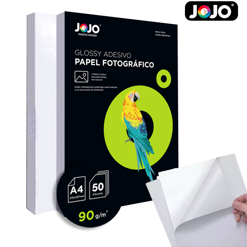 200 Folhas GLOSSY ADESIVO 90g A4 (210mm x 297mm) Papel Fotográfico Resistente a Água JOJO BRASIL