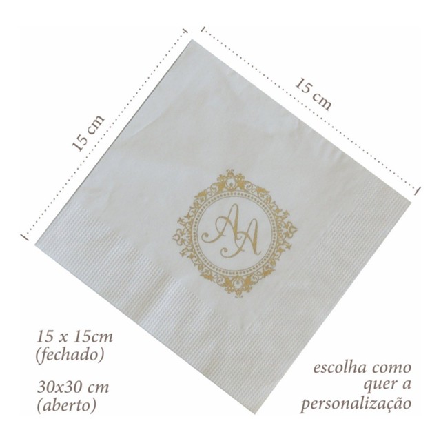 | 200 Guardanapos Personalizados 30x30cm Folha Dupla Eventos, Casamen... este produto | R$ 171,90 | — | 5.0/5 | — |
