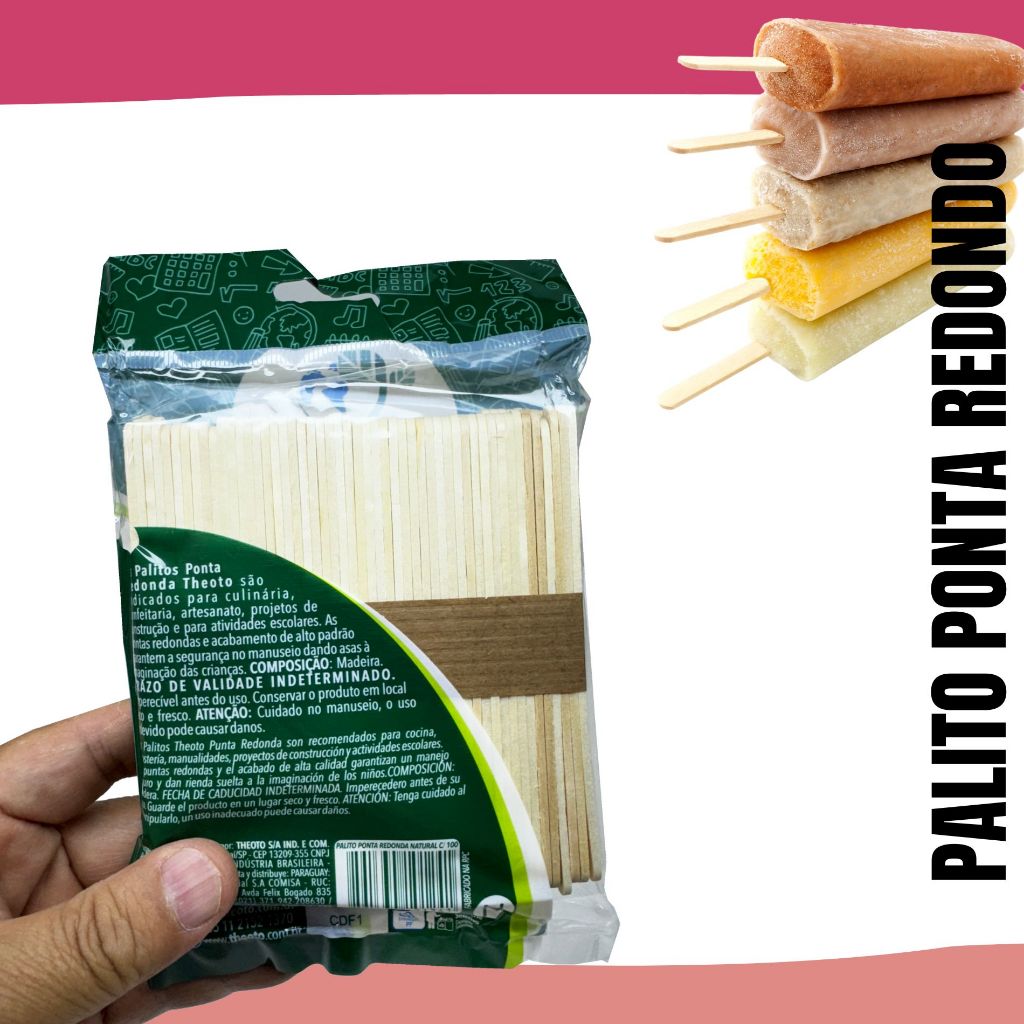 Descrição do produto Palito de Sorvete Theoto - 200 Unidades Descrição do Produto: Os Palitos de Sorvete Theoto são ideais para diversos usos, desde a produção de sorvetes artesanais até projetos criativos e educativos. Feitos com madeira de reflorestamento, são seguros e perfeitos para trabalhos manuais, como artesanato pré-escolar, ajudando no desenvolvimento da criatividade das crianças. Características: Material sustentável: Madeira de reflorestamento Versatilidade: Ideal para sorvetes, picolés, artesanato e atividades escolares Acabamento seguro: Pontas arredondadas para um manuseio confortável Superfície lisa: Facilita a pintura, colagem e personalização Especificações Técnicas: Formato: Palito de sorvete com ponta arredondada Quantidade: 200 unidades por embalagem Dimensão: Padrão para palitos de sorvete Aplicações: Artesanato: Construção de maquetes, enfeites e brinquedos educativos Culinária: Perfeito para fabricação de sorvetes e picolés caseiros Atividades escolares: Estimula a coordenação motora e a criatividade Atenção: Não recomendado para crianças menores de 3 anos sem supervisão de um adulto. EQUIPE LUIZYUJISATON