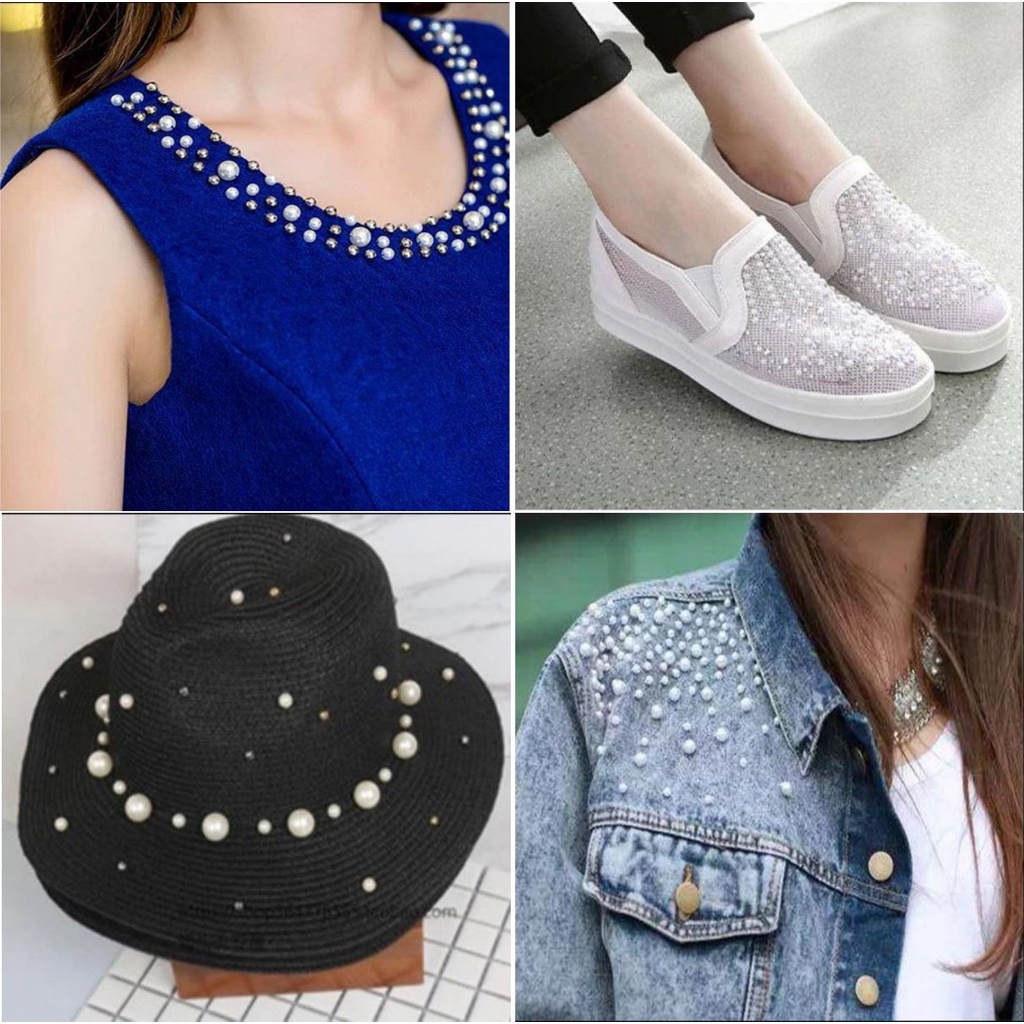 200 Perolas Abs inteira Sem Furo 8mm +200 Rebites Artesanato Perolas coloridas para confeccao de roupas, sapatos e acessorios. Perolas abs para seu artesanato, decoracao e montagem dos mais diferentes itens Personalize seu trabalho. Customize Suas Roupas, Chapeu e muitos outros. Itens Inclusos: . 200 Perolas ( Ideal para aplicacao com rebite em roupas, bolsas, chinelos, bijuterias e artesanatos em geral ) 8mm ( Escolha a cor unica no campo de variacao ) . 200 Rebites ( Para dar um melhor acabamento nos tecidos ) 2,3mm Modo de Aplicar: - 1 Coloque o Rebite no molde - 2 Coloque a Perola na matriz na parte de cima - 3 Coloque o tecido entre as matrizes - 4 Aperte o suporte e aperte o gatilho Em segundos ja estara aplicado Pode ser utilizado na Aplicadora de perola ou Balancim.