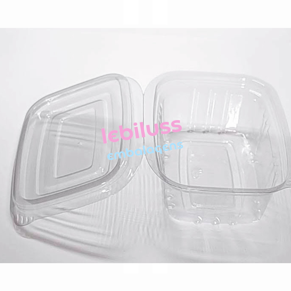 200 Unid Embalagem Pote Retangular 250ml com Tampa Articulada PF 88
