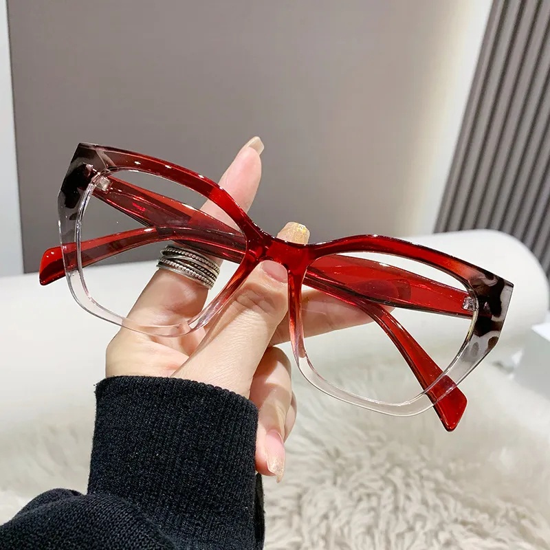 2023 Nova Armação De Óculos De Olho De Gato Moda Feminina Plástico Óptico Anti-Brilho Azul