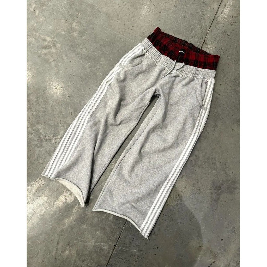 2024 Nova Calça Y2K Fashion Plaid Splicing Casual Pants Homens Mulheres Retro Harajuku Loose Straight Calças De Hip-hop