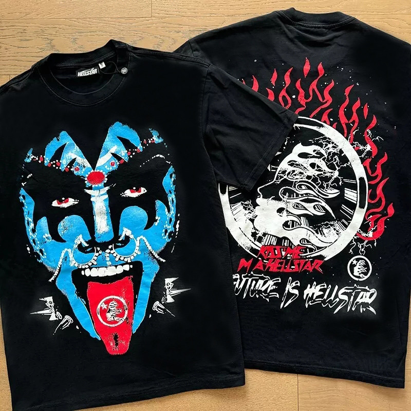 2025 High Street Hellstar New Vintage Print Hip Hop Casual Camiseta Manga Curta Gola Redonda Casal