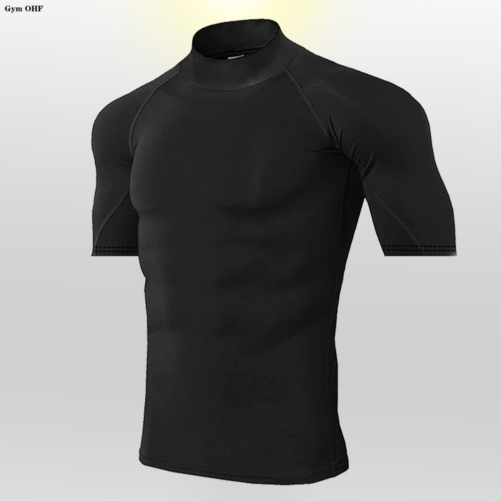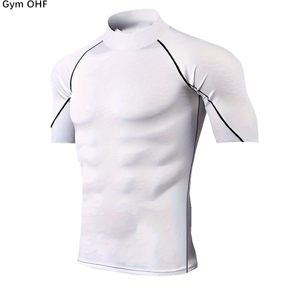 2025 Verão Cor Sólida Manga Curta Camiseta Moda Camisa De Fundo Masculina Apertada Gola Alta T