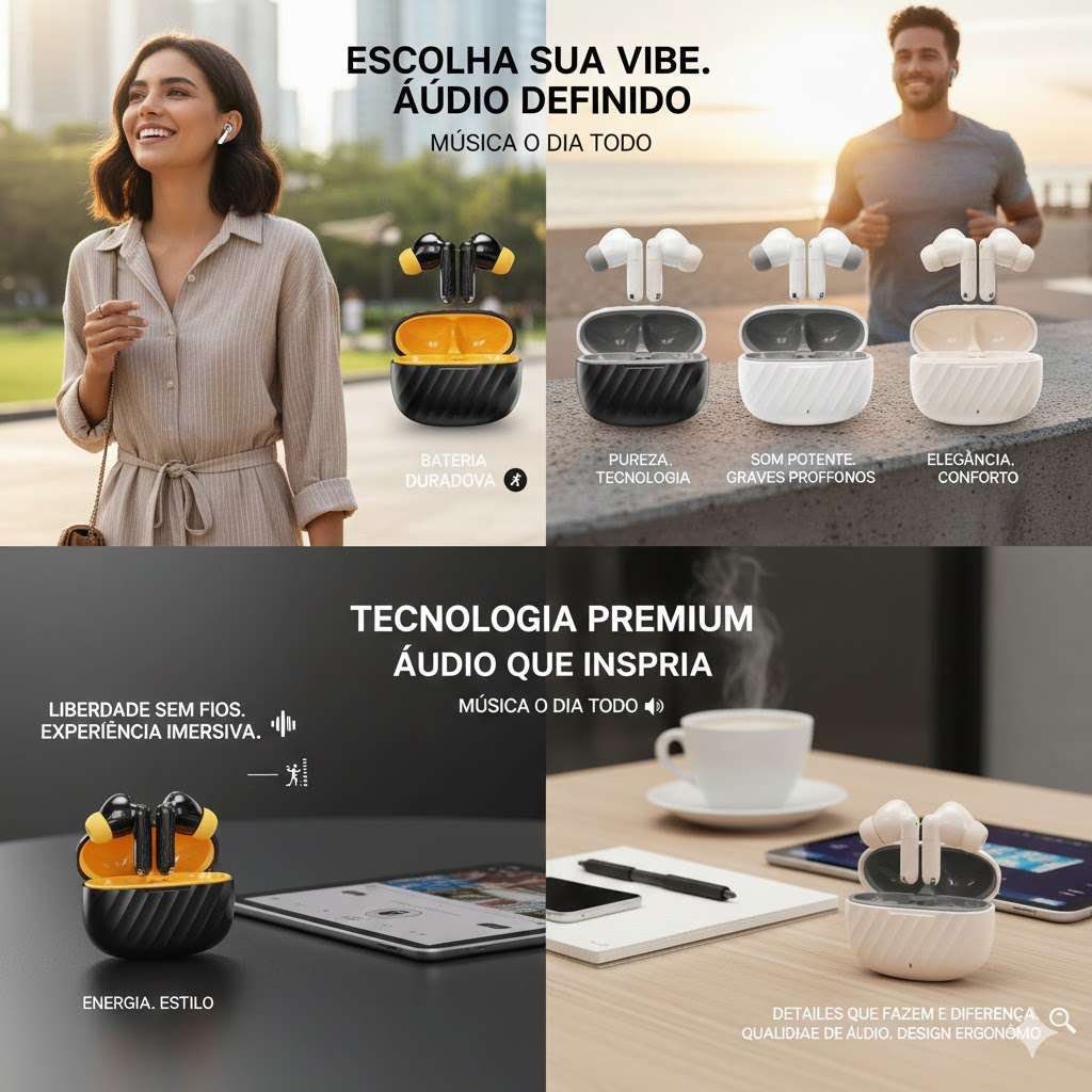 🎧 Buds 7 Pro - Fones de Ouvido Sem Fios Premium Som imersivo, conforto duradouro e estilo que combina com você ✨ Por que escolher os Buds 7 Pro? 🎵 Áudio Hi-Res e graves potentes: Tecnologia de driver duplo para som nítido, detalhado e graves profissionais, ideal para quem ama música de alta qualidade. 🛡️ ANC (Cancelamento Ativo de Ruído): Isola você do mundo exterior, proporcionando uma experiência de áudio imersiva em ambientes barulhentos. 🎮 Baixa latência: Modo de jogo sem atraso, perfeito para gamers que precisam de sincronia áudio-visível. 💧 Resistência à água IPX4: Seguro para uso no dia a dia e durante atividades físicas, resistindo ao suor e à chuva leve. 🔋 Bateria de longa duração: Até 6 horas de uso contínuo e até 30 horas com o estojo de carregamento, mantendo você conectado o dia todo. 🎧 Conforto o dia todo: Design ergonômico e pontas de silicone intercambiáveis para um ajuste perfeito e confortável, mesmo em uso prolongado. 🎨 Escolha seu estilo Escolha a cor que combina com a sua personalidade: Preto Intenso: Estilo moderno e vibrante, com detalhes em amarelo que destacam o design. Branco Clássico: Elegância e simplicidade, ideal para quem prefere um visual clean. Bege Suave: Tom neutro e sofisticado, perfeito para harmonizar com qualquer look. 📦 O que vem na caixa? 1 par de fones de ouvido Buds 7 Pro 1 estojo de carregamento 1 cabo USB-C para carregamento 3 pares de pontas de silicone (tamanhos S, M, L) Manual de instruções 📱 Compatibilidade Funciona com todos os dispositivos Bluetooth, incluindo smartphones Android e iOS, tablets, laptops e consoles. 🎯 Para quem é ideal? Amantes de música que buscam qualidade de áudio premium. Gamers que precisam de baixa latência e som imersivo. Profissionais que precisam de cancelamento de ruído em ambientes de trabalho. Pessoas ativas que querem um fone resistente ao suor e água.