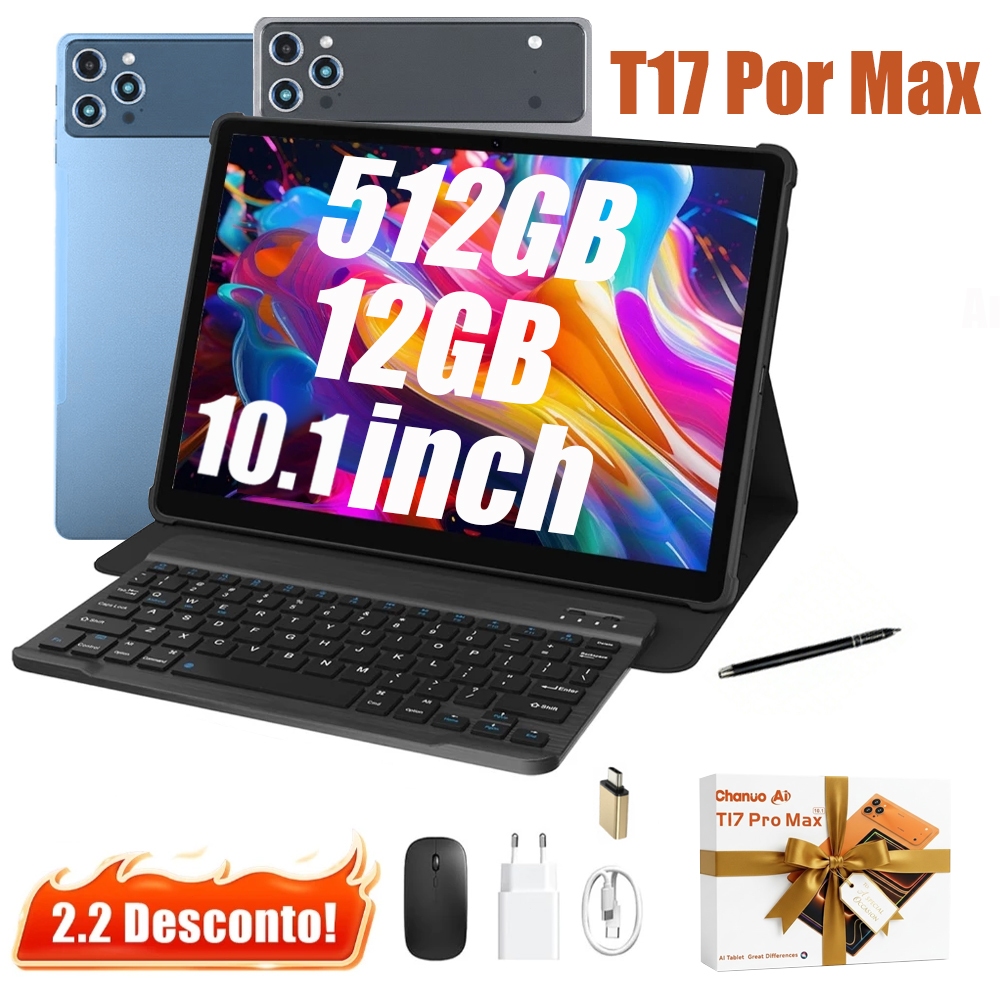 2026 Tablet T17 PRO MAX amx mouse teclado 12GB RAM 512GB ROM Android14 com case 10.1 polegadas câmera 32MP