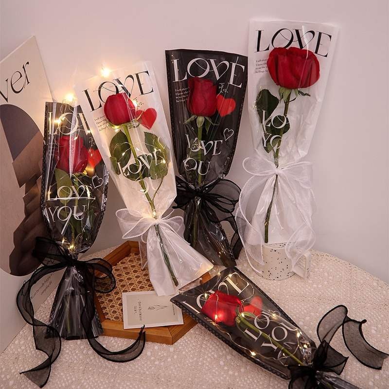 20pcs LOVE Sacos De Embalagem Rosa Transparente Florais Plásticos Um Saco Reto Para O Dia Dos Namorados , Casamento , Decorações De Aniversário