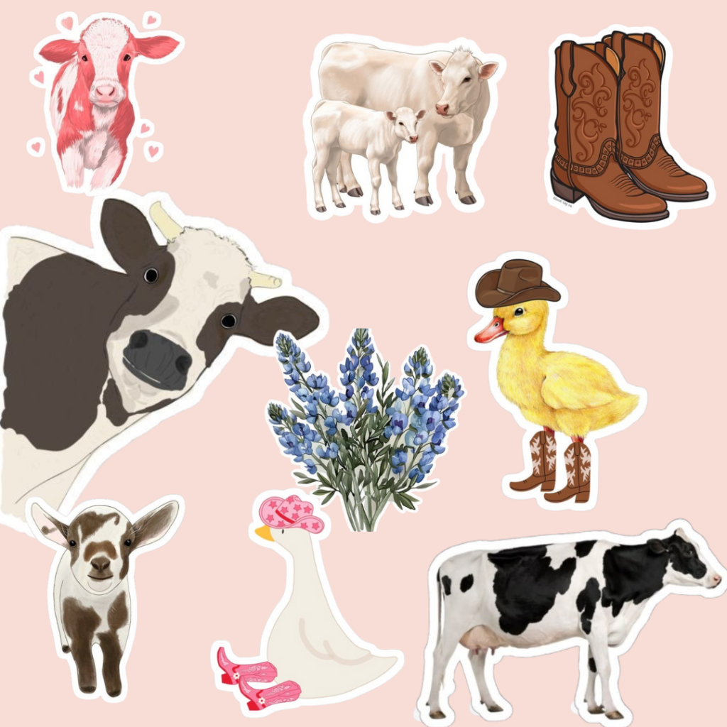 21, ou 41 Stickers / Adesivos Tema Fazenda • Estilo Country Fofo • Para Journal, Planner, iPad