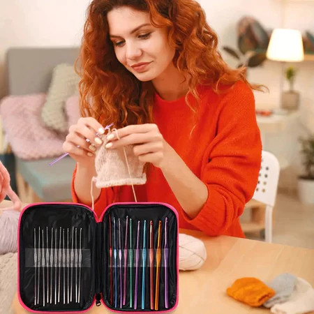22 Pçs Conjunto De Ferramentas De Tricô De Crochê Mão Agulhas Fio Ponto Cruz Doméstico