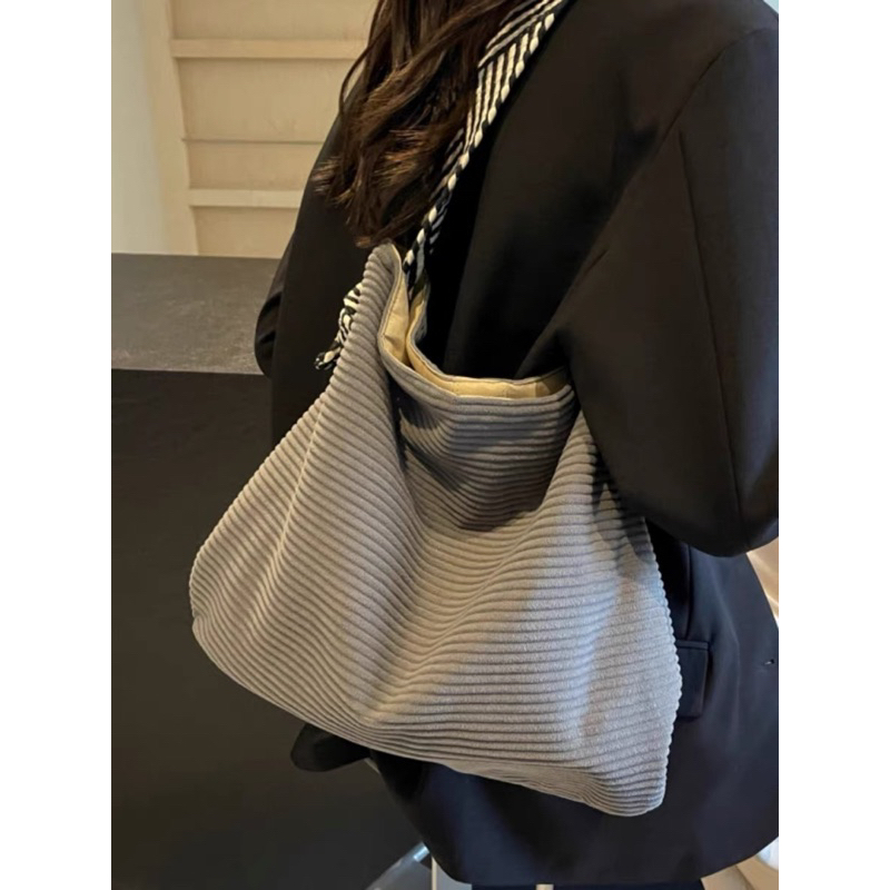 Bolsa casual estilo preguiçosa feminina primavera e verão nova moda bolsa de veludo cotelê grande capacidade bolsa de ombro bolsa de viagem axila, adequada para viagens, compras, deslocamento diário, trabalho, escola