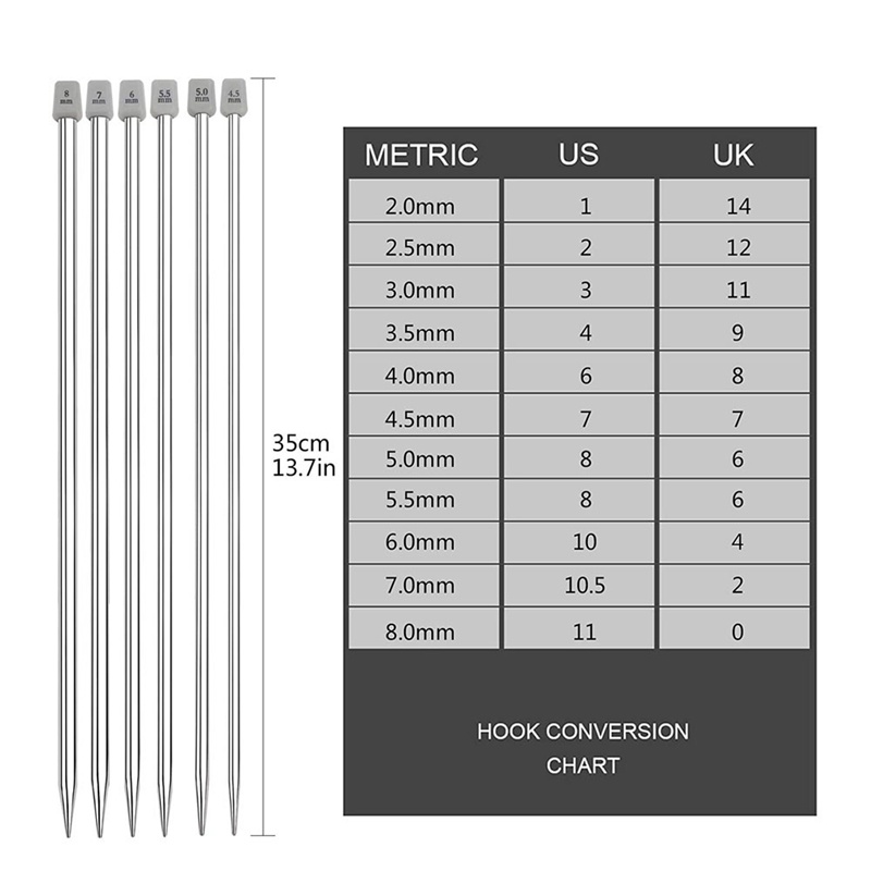 Agulhas de tricô retas de 22 peças/conjunto de 2 a 8 mm agulhas de tricô retas conjuntos de gancho de crochê pontiagudo único conjuntos de agulhas de camisola de aço inoxidável para ferramentas de tricô Agulhas de tricô em aço inoxidável em tamanhos diferentes, suficientes e vários para atender suas diversas agulhas de malha em aço inoxidável em tamanhos diferentes, 22 peças no total, suficientes e várias para atender suas diversas necessidades de artesanato diário; Informações de tamanho: as agulhas de suéter contêm tamanhos sortidos, incluindo 2 mm, 2,5 mm, 3 mm, 3,5 mm, 4 mm, 4,5 mm, 5 mm, 5,5 mm, 6 mm, 7 mm e 8 mm de diâmetro, O suficiente e conveniente para você escolher um adequado de acordo com suas necessidades reais Material durável: feito de aço inoxidável de qualidade, nossas agulhas de tricô de ponto único são resistentes e duráveis, resistentes à ferrugem e corrosão, não é fácil de quebrar ou deformar, leve e suave Ampla gama de aplicações: essas agulhas de ponto único são ideais para fazer uma variedade de projetos de tricô personalizados, como fazer lenços, chapéus, meias, camisolas, calças, sapatos e assim por diante; Você também pode dê-los Presentes de coração quente ou família como presentes de coração quente