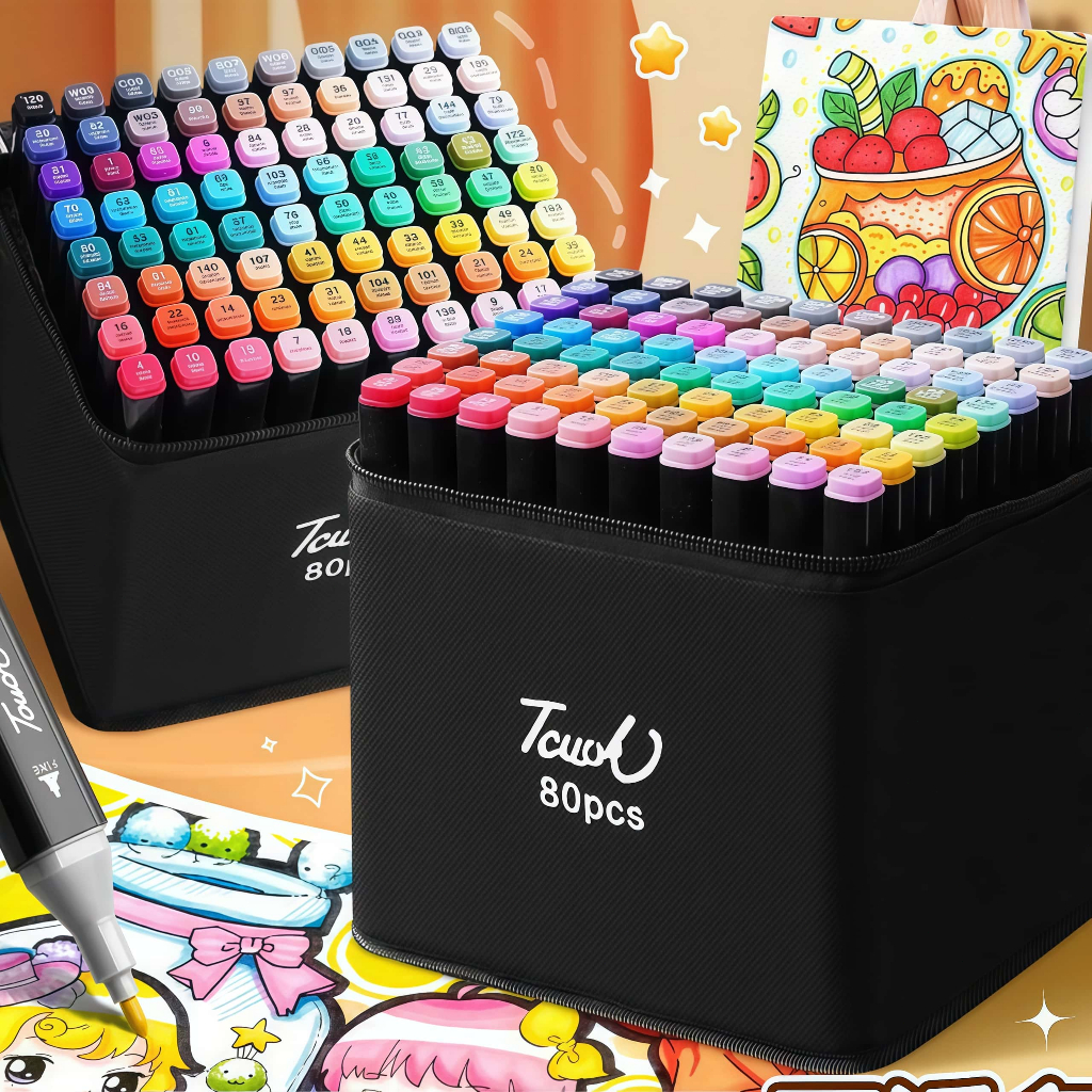 24/30/36/48/60/80 Cores Caneta Marcadora De Cabeça Dupla Oleosa Artística Para Estudantes Material Escolar Papelaria