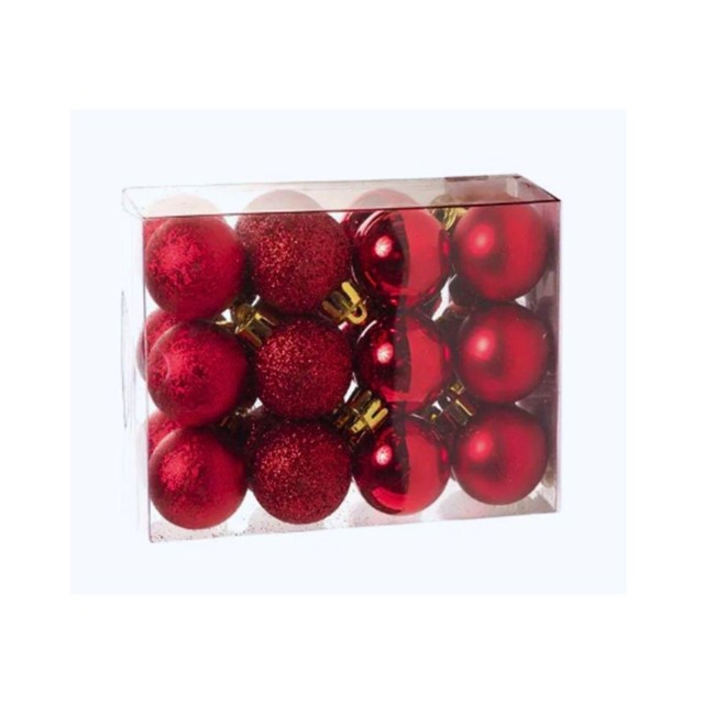 24 Bolinhas de Natal Vermelha Pequena Texturizada pra Decorar Sua Arvore
