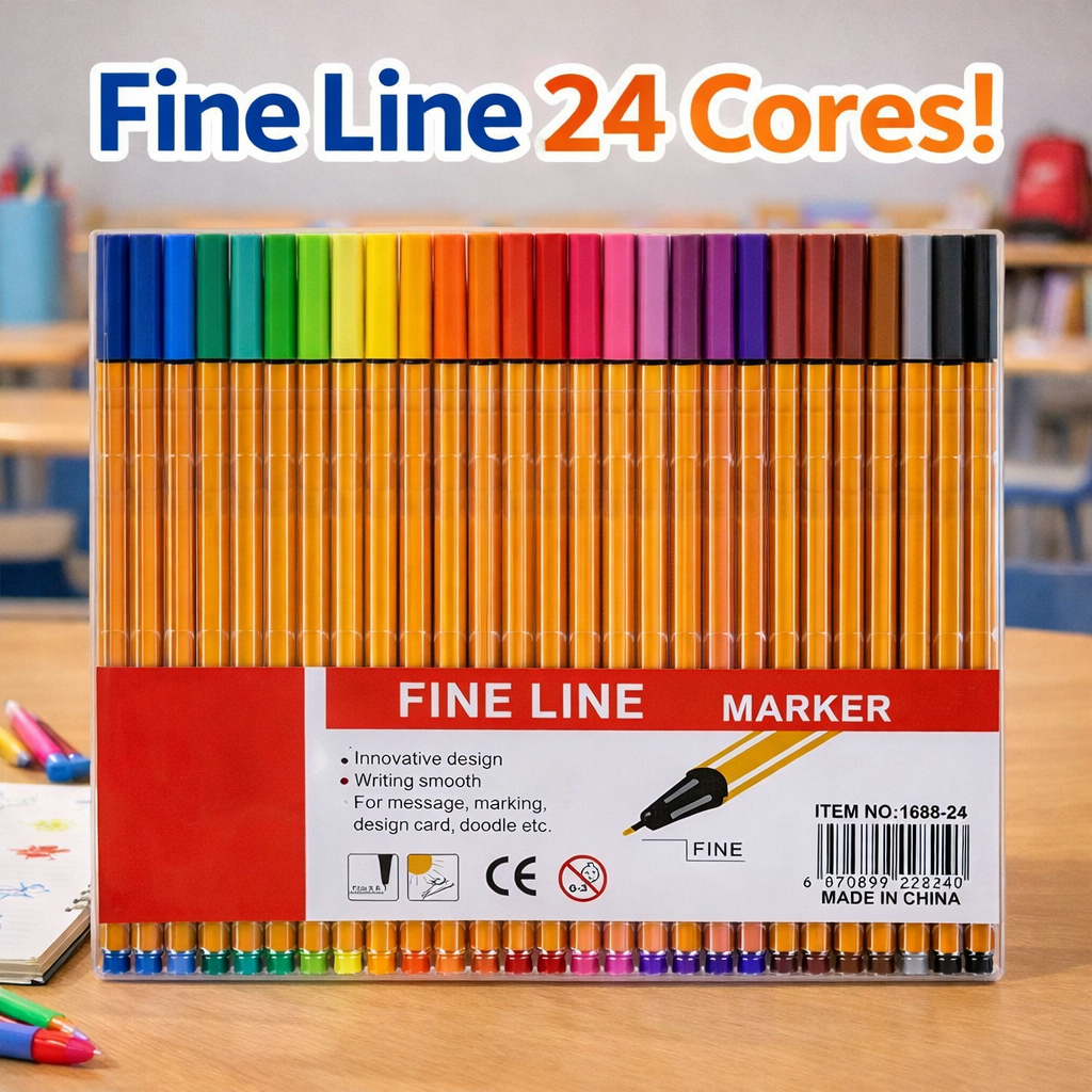 24 Canetas Fine Line Ponta Fina 0.4 Hidrográfica Bolígrafo Para Lettering e Pontilismo Escolar