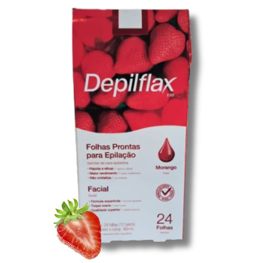 24 Folhas Prontas p/ Depilação Facial Morango ou Natural Depilflax buço sobrancelha