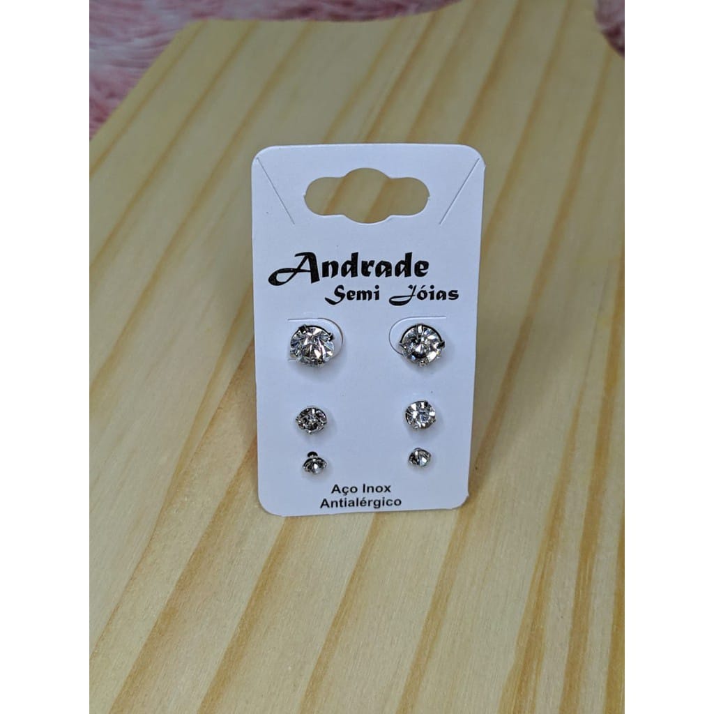 24 Pares Brinco Aço Inox Antialérgico Estrela Coração Zircônia Modelos Variados Atacado 3 Furos Lote de Brincos