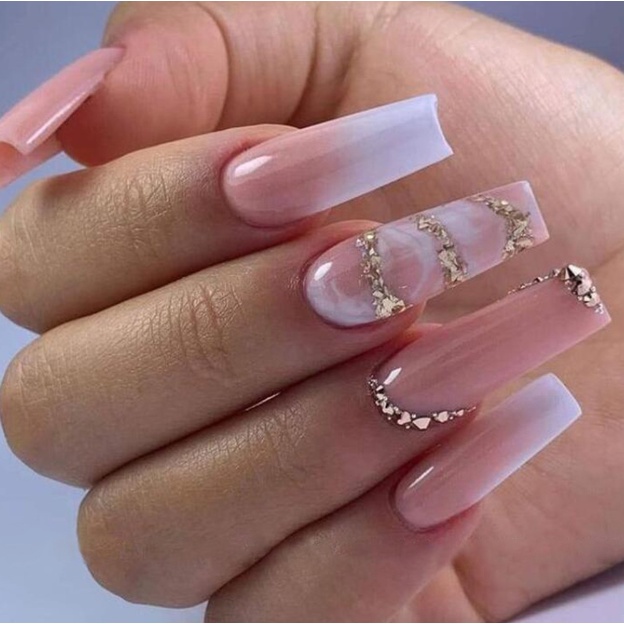 24 peça unhas postiças realista decoradas em gel francesinha com diamantes 3D arte unha bailarina brilhante