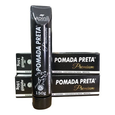 VALIDADE JANEIRO DE 2027 Descrição do produto 24 Unidades! A Pomada Preta Premium minimiza, com o auxílio da massagem, os sintomas de cansaço e fadiga adquiridos no decorrer do dia a dia, proporcionando agradável sensação de relaxamento. MODO DE USAR: Aplicar o produto na região desejada e massagear suavemente com as mãos até completa absorção. Envio Imediato!