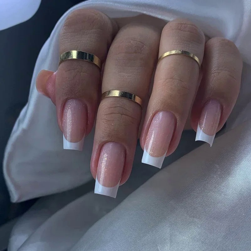 24Pcs Borboleta Azul Unhas Falsas Caixão Curto Simples com Design Francês Wearable Unhas Falsas Bonito Cobertura Compl