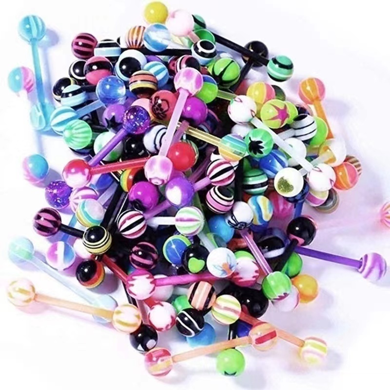24pçs Mixed Rainbow Color Acrílico UV Flexível Língua E Lábio Anel Ornamento Corpo Piercing Barra Do Colorido