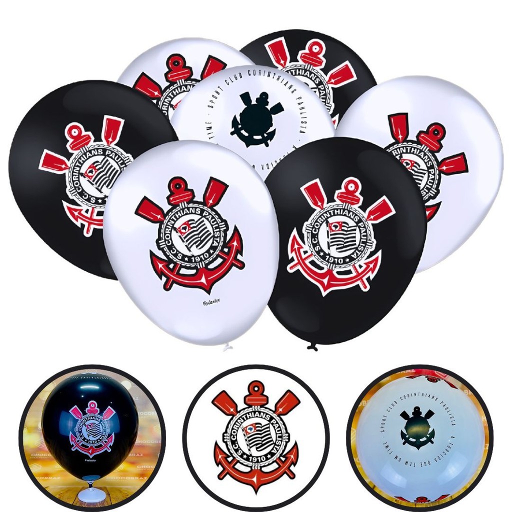 Balão CORINTHIANS n°9 resistentes feito em LATEX, Produto licenciado Medidas: 9 polegadas aproximadamente ( 22 cm inflado) Fabricante: FESTCOLOR