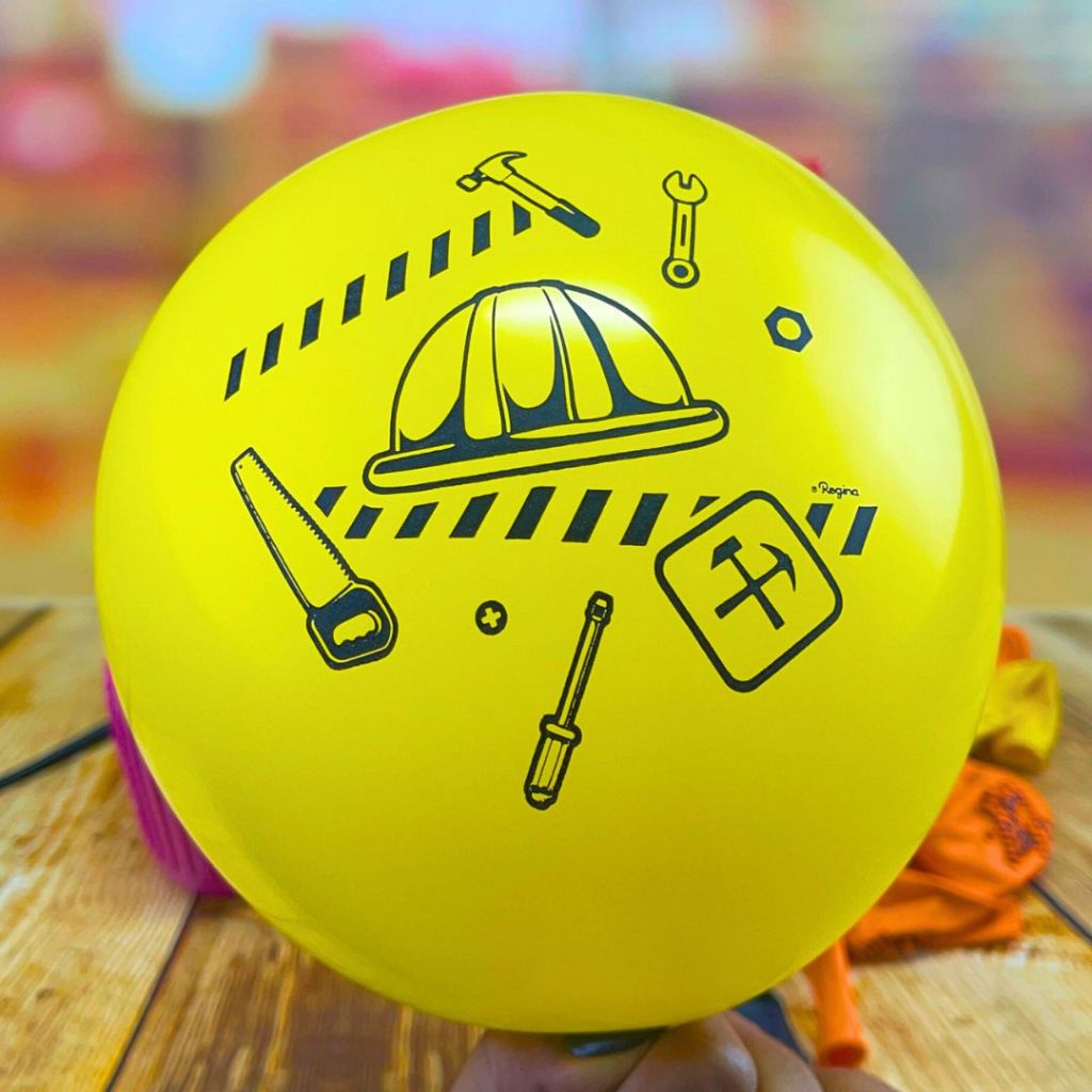 "Kit com 25 Balões de Látex Redondo 9'' Estampas coloridas e divertidas de construção, ideais para festas infantis, decorações temáticas e eventos especiais. Balões resistentes, com cores vivas e acabamento de qualidade. Perfeitos para criar um ambiente lúdico e encantador."