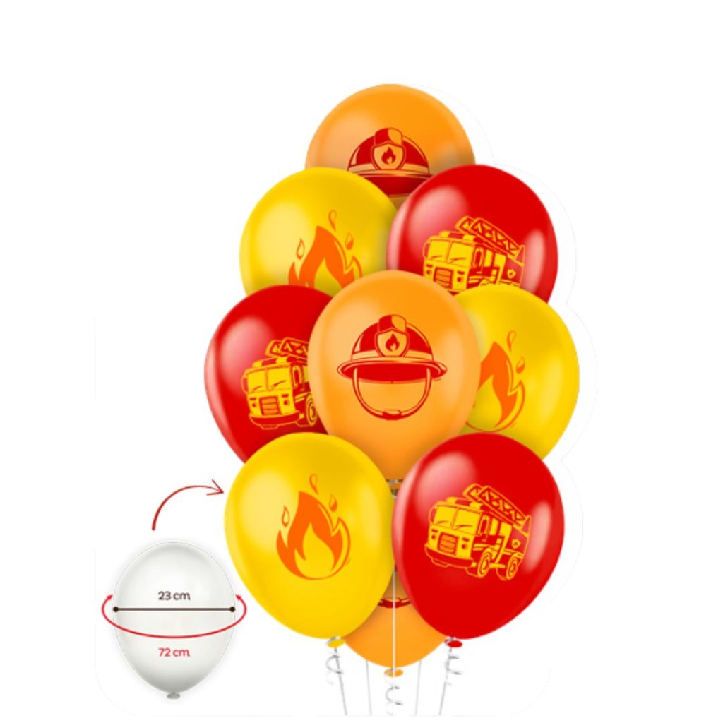 25 Balão Festa BOMBEIRO 9 polegadas Cada pacote contém: 25 Unidades de Balões de tema Tamanho N°9 aproximadamente (22 cm inflado) Fabricante: Regina