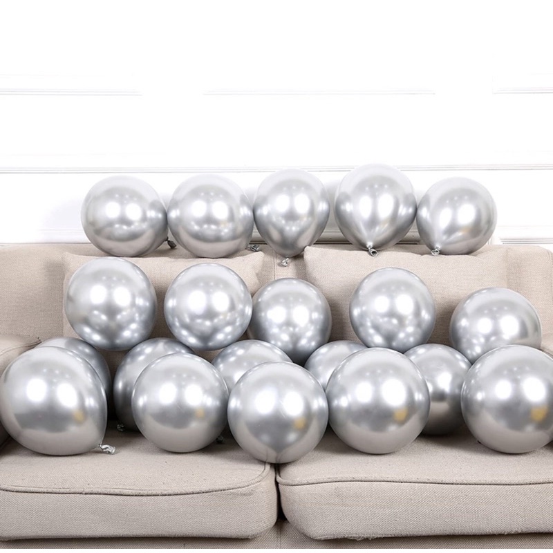 25~125 UNID BALÃO 5 POL PRATA PRATEADO METALIZADO BEXIGA CROMADO