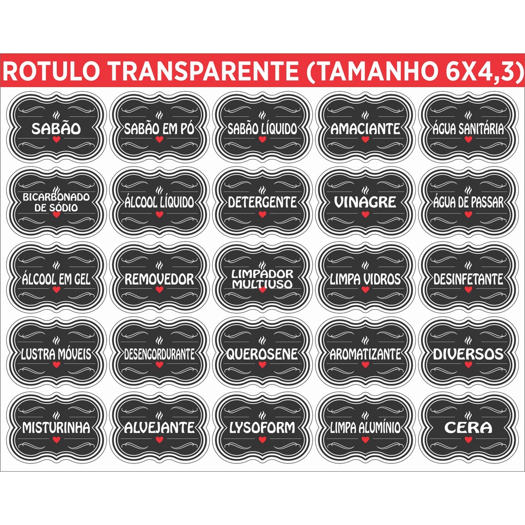 25 Adesivos no Vinil BRANCO OU PRETO para Potes LIMPEZA Organizador 6x4,3cm
