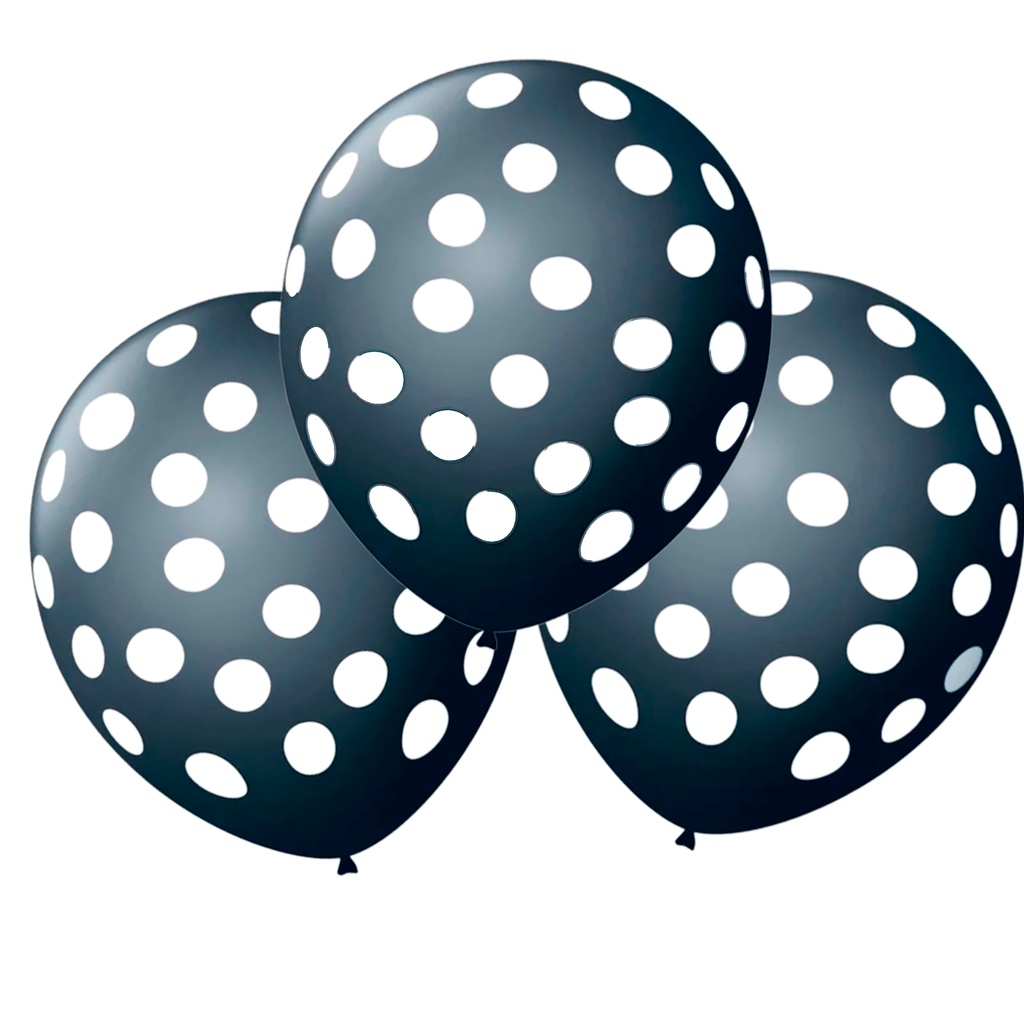 25 Bexigas Balão N9 Decoração Preto com Bolinhas brancas