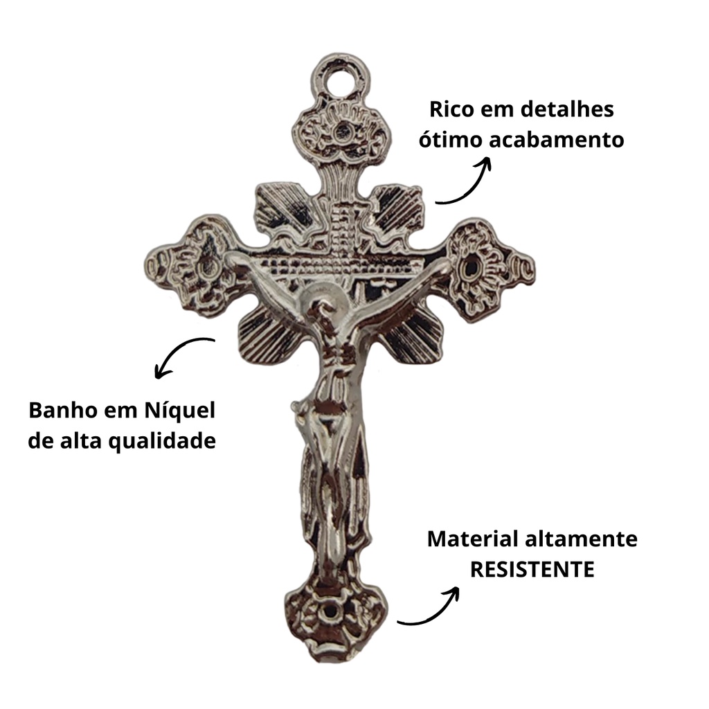 !! ESCOLHA O SANTO(A) DA IMAGEM DA SUA PREFERÊNCIA NA HORA DA COMPRA !! Os santos disponíveis: São Miguel Arcanjo, São Bento, São Pedro Apostolo, N Sra Dos Navegantes, Mãos Ensanguentadas de Jesus, Pai das Misericórdias, Jesus Misericordioso, Sta Luzia, Mãe Peregrina, N Sra das Graças, Irmã Dulce, Rainha da Paz, Sagrado Coração de Jesus, Divino Pai Eterno, Carlo Acutis, N Sra Aparecida, São José, Sta Teresinha, N Sra de Fátima, N Sra Guadalupe, N Sra dos Anjos, Sagrada Família, Sta Rita de Cássia, Sagrado Coração de Maria, N Sra dos Pecadores, Padre Pio, N Sra do Perpétuo Socorro, São Cristovão, São Francisco, N Sra Desatadora de Nós, N Sra Sallete, N Sra da Conceiçãoe, St Antônio e Espírito Santo! Especificações do produto: - Banho: Níquel - Material: Zamak Crucifixo: - Dimensões: 4,3x2,8 cm - Quantidade: 25 Unidades Crucifixos Entremeio - Dimensões: 2x1,5 cm - Quantidade: 25 Unidades Resinadas Uma Face - Envio para todo o Brasil! Muito obrigado pela visita, que Deus te abençoe! Caso haja qualquer dúvida, não hesite em nos contatar! =D