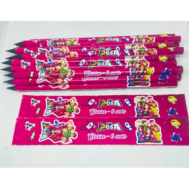 25 lembrancinha lápis personalizado para festa infantil Grupo dos rosa