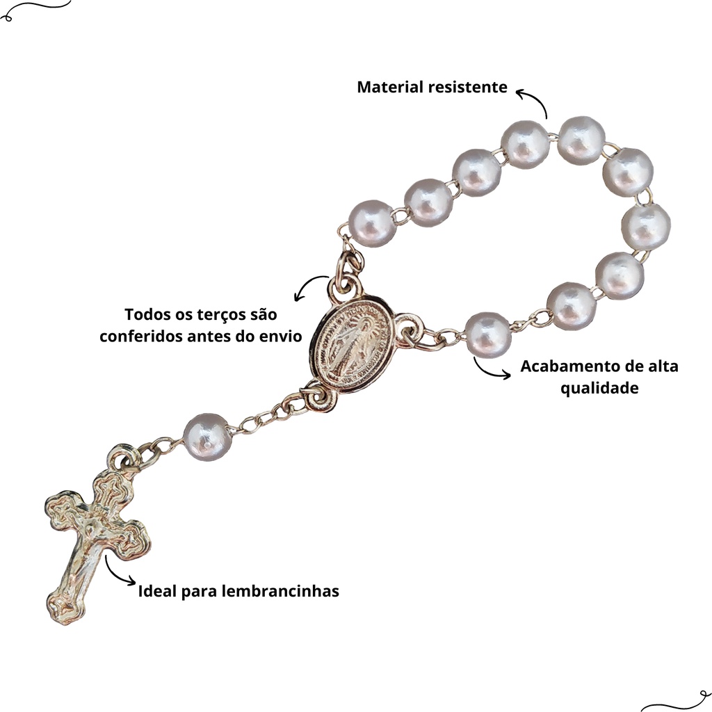 25 Mini Terços Dezena Para Lembrancinhas Casamento Batizado Crisma Eucarístia Perolado