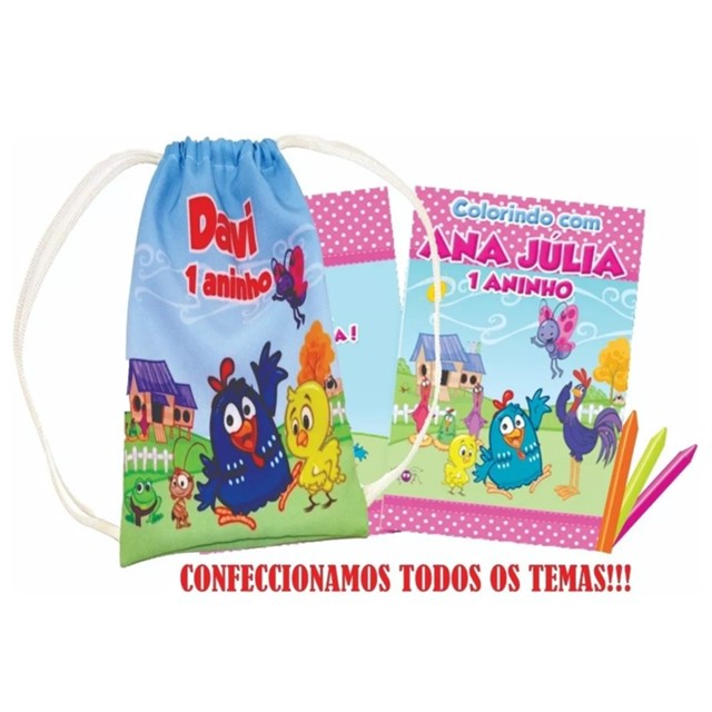 25 Mochilinhas Sacolinhas + 25 Revistinhas de colorir + 25 Caixinha de giz De Cera Grátis todos os temas