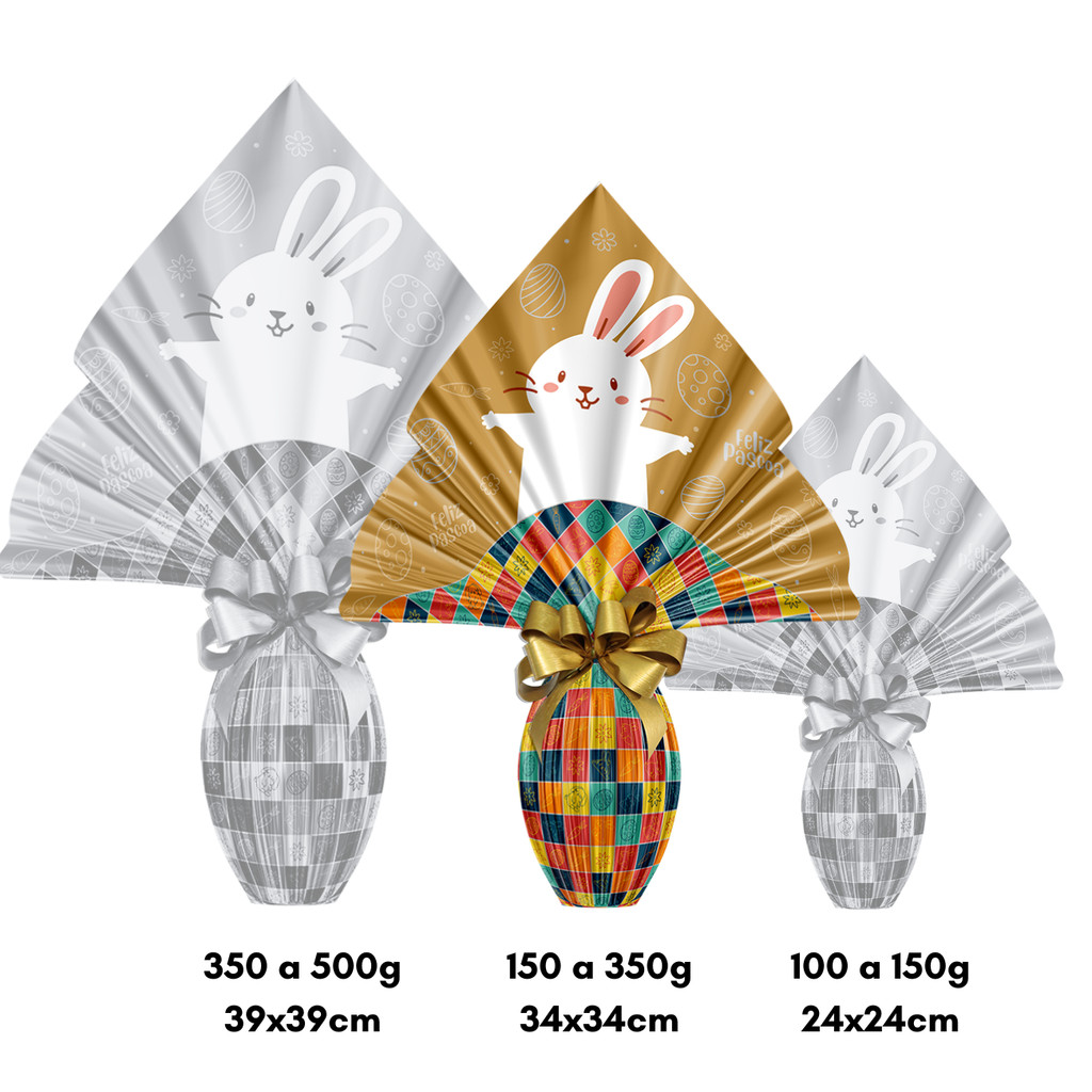 | 25 Saco Metalizado p/ Ovo 150/350g 34x34cm Cod. 5432 Páscoa Diverti... este produto | R$ 68,90 | — | 5.0/5 | 7 |