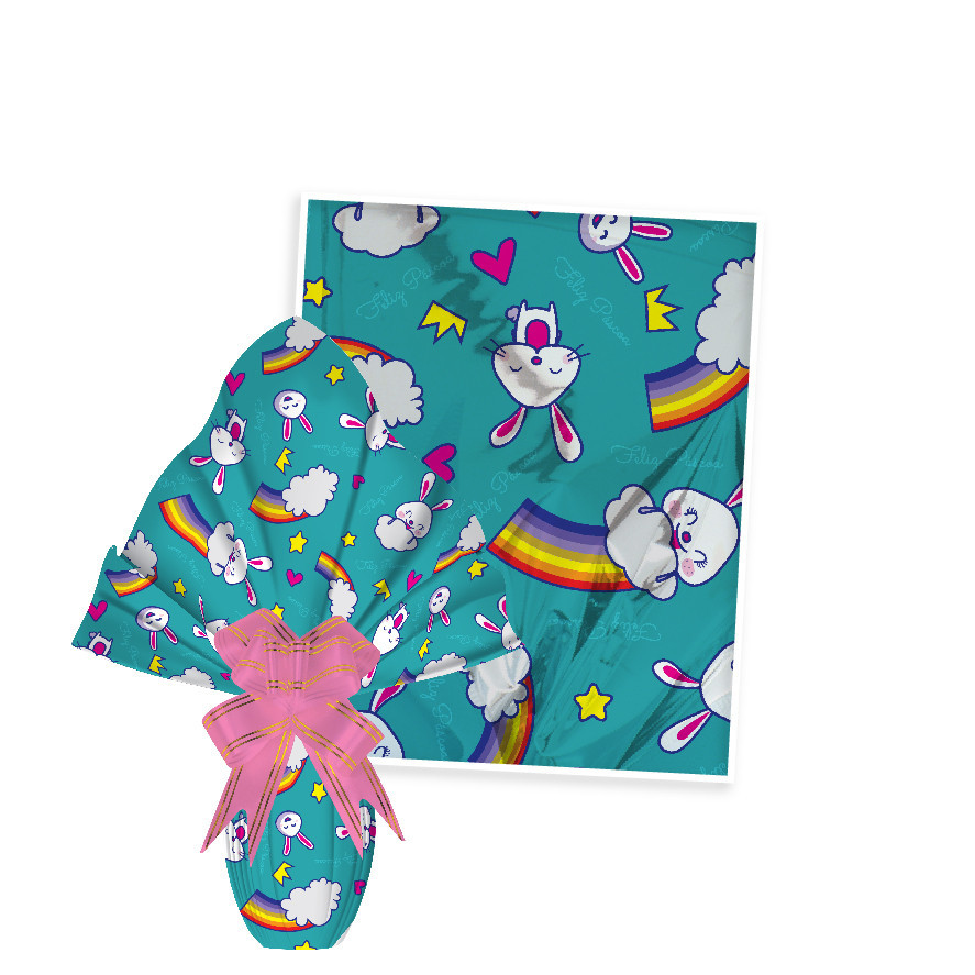 25 Sacos Express PÁSCOA COELHO TURQUESA ARCO IRIS Ovo Páscoa 250g a 350g - 35X35 cm Luckyfest