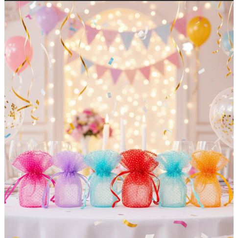 25 Saquinho Organza 28 cm Redondo P/Embalagens Festa Decoração com brilho
