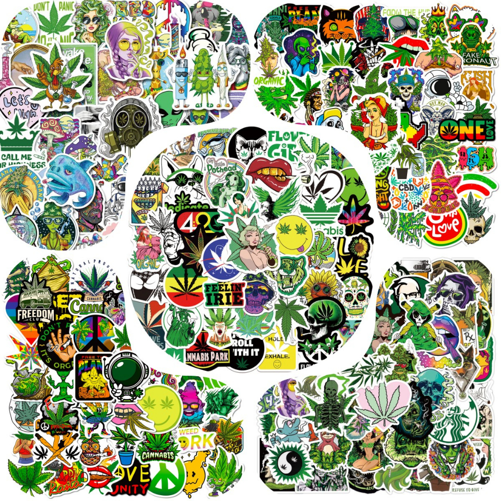 250/200/150/100/50PCS Adesivos Engraçados de Erva - Decalques de Vinil para Skate, Geladeira e Violão (Design Legal de
